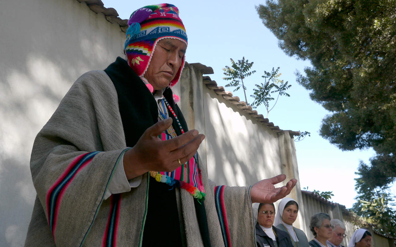 Pardon and Mercy Among The Aymara Aymara prayer leader Calixto Quispe offers prayers at the Maryknoll Mission Institute in Cochabamba, Bolivia. (S.Sprague/Bolivia)