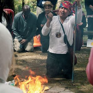daniel-cano-dirige-ritual-oracion-durante Daniel Cano, un líder espiritual maya, dirige un ritual de oración maya durante la Conferencia de Afiliados Maryknoll 2017.