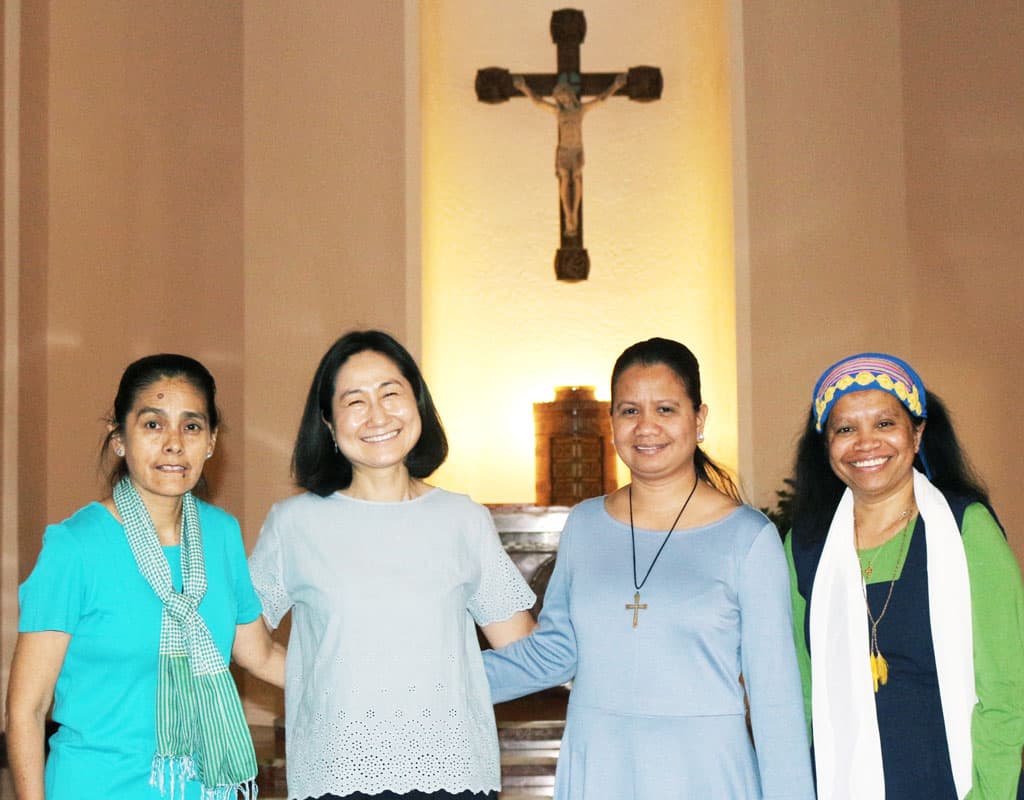 Hermanas Maryknoll, de izq. a dcha, Juana Encalada, Hyun Jung Kim, Gloria Ardenio Agnes y Isabel da Costa buscan llevar la presencia de Dios al mundo. (Shirley King, M.M./Nueva York). Ellas Cuatro Hermanas Maryknoll hicieron sus Votos Perpetuos en agosto.