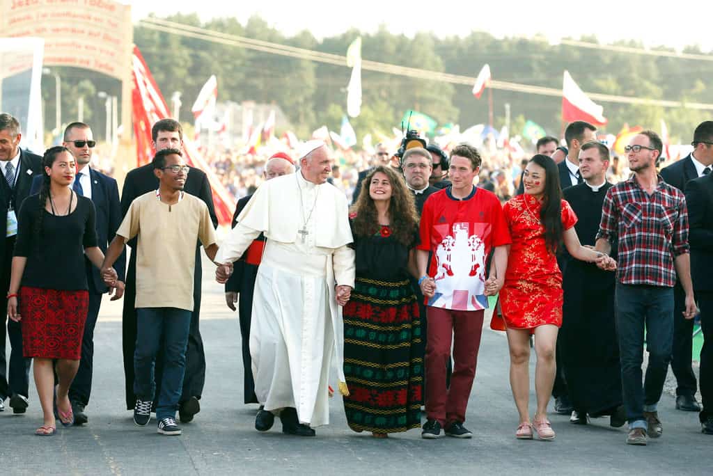 la-hora-de-los-Jóvenes-09 El Papa Francisco camina con jóvenes durante una vigilia de la Jornada Mundial de la Juventud en Polonia, 2016.