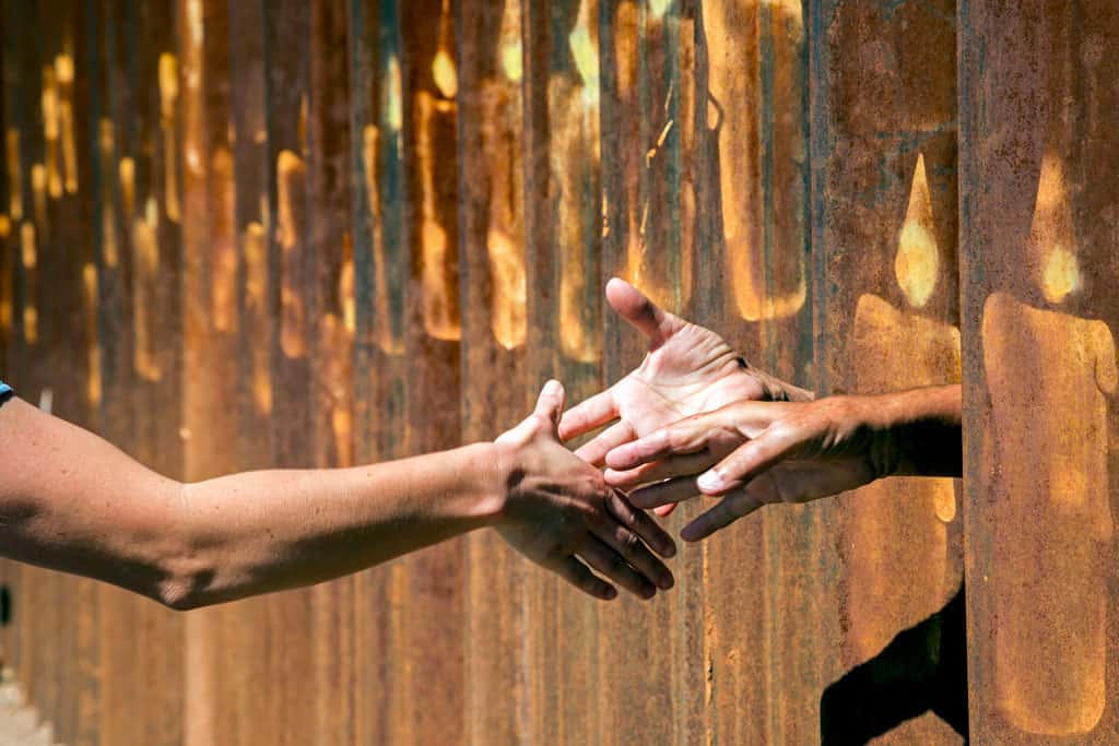 accion-humanitaria-hacia-aquellos-que-buscan-proteccion-01 Unas manos se encuentran en la frontera durante una marcha en Nogales, Arizona, y Nogales en Sonora, México. (CNS/México)