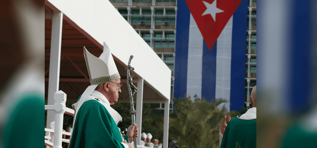 20230117T0834-POPE-CUBA-LETTER-1788336_1280x600 Imagen destacada: El Papa Francisco llega a la Plaza Revolución en la Habana para dar Misa mientras una enorme bandera cubana cuelga de un edificio el 20 de septiembre del 2015. (CNS photo/Paul Haring)