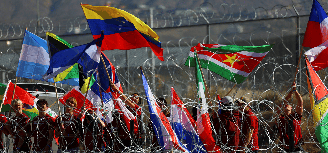 Featured Image: Personas en Ciudad Juárez, México, ondean banderas durante una misa binacional celebrada el 9 de noviembre de 2024, en memoria de los migrantes que murieron durante su viaje a los EE.UU. cerca de la frontera entre México y los Estados Unidos. (Foto OSV News/Jose Luis Gonzalez, Reuters)