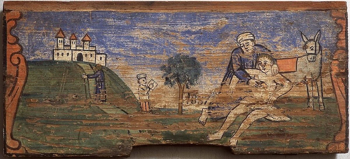 Imagen destacada: Pintura del Buen Samaritano del Museo Municipal de Apicultura de Radovljica, Eslovenia. (WikiMedia Commons).