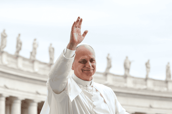 20251022T0617-POPE-AUDIENCE-SADNESS-1806489 El Papa León XIV saluda a los visitantes y peregrinos desde el papamóvil mientras recorre la plaza de San Pedro en el Vaticano antes de su audiencia general del 22 de octubre de 2025. (Foto CNS/Lola Gómez)